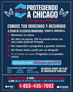 The City has created a “Protecting Chicago” website to connect neighbors with resources and information about their immigration rights in Chicago. Please click below to be connected with the City’s new “Protecting Chicago“ site.