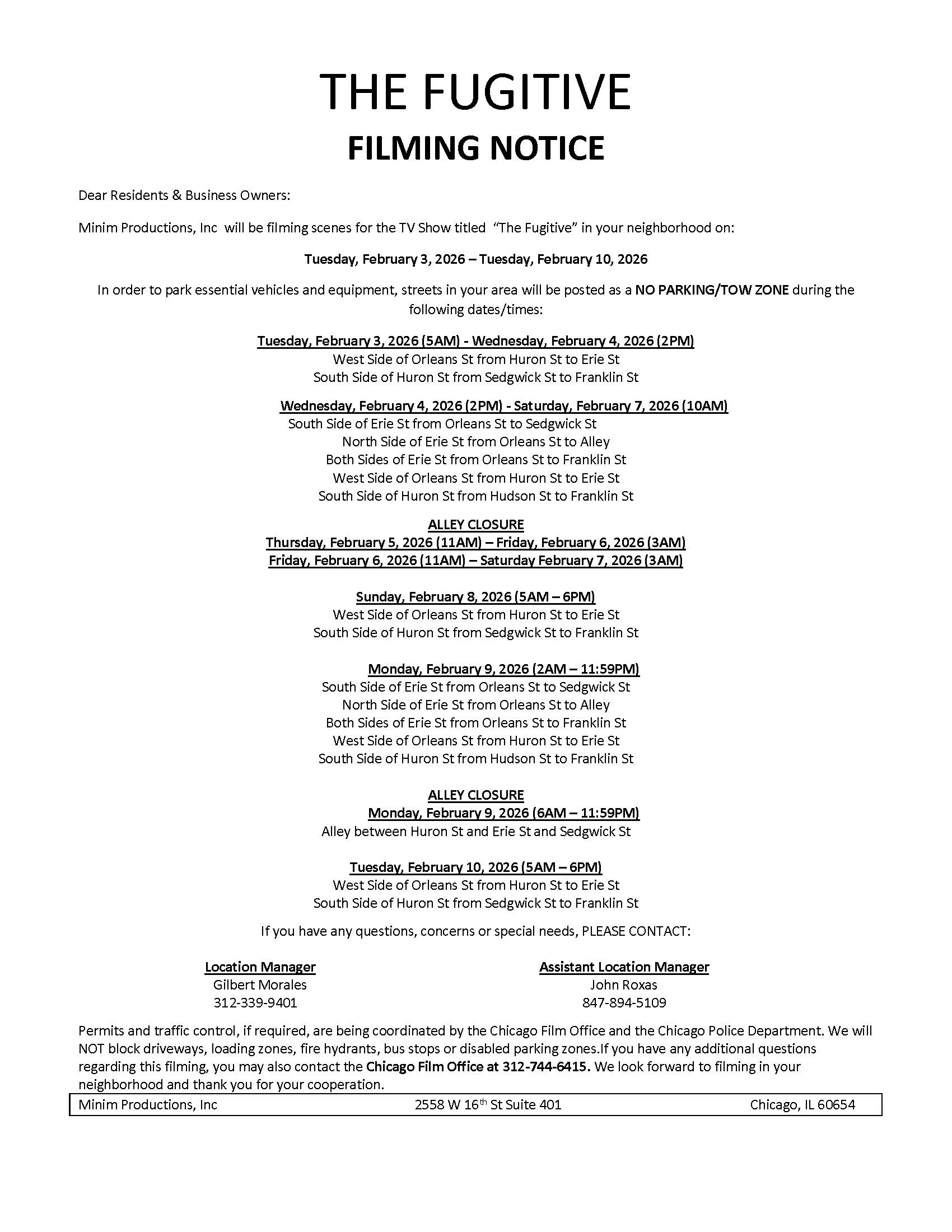 Filming – Tuesday, February 3, 2026 – Tuesday, February 10, 2026