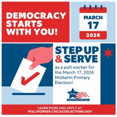 The Chicago Board of Elections is seeking poll workers for the Primary on March 17th, 2026, including bilingual election judges who speak Spanish, Chinese, Hindi, Polish, Korean, and Tagalog.
